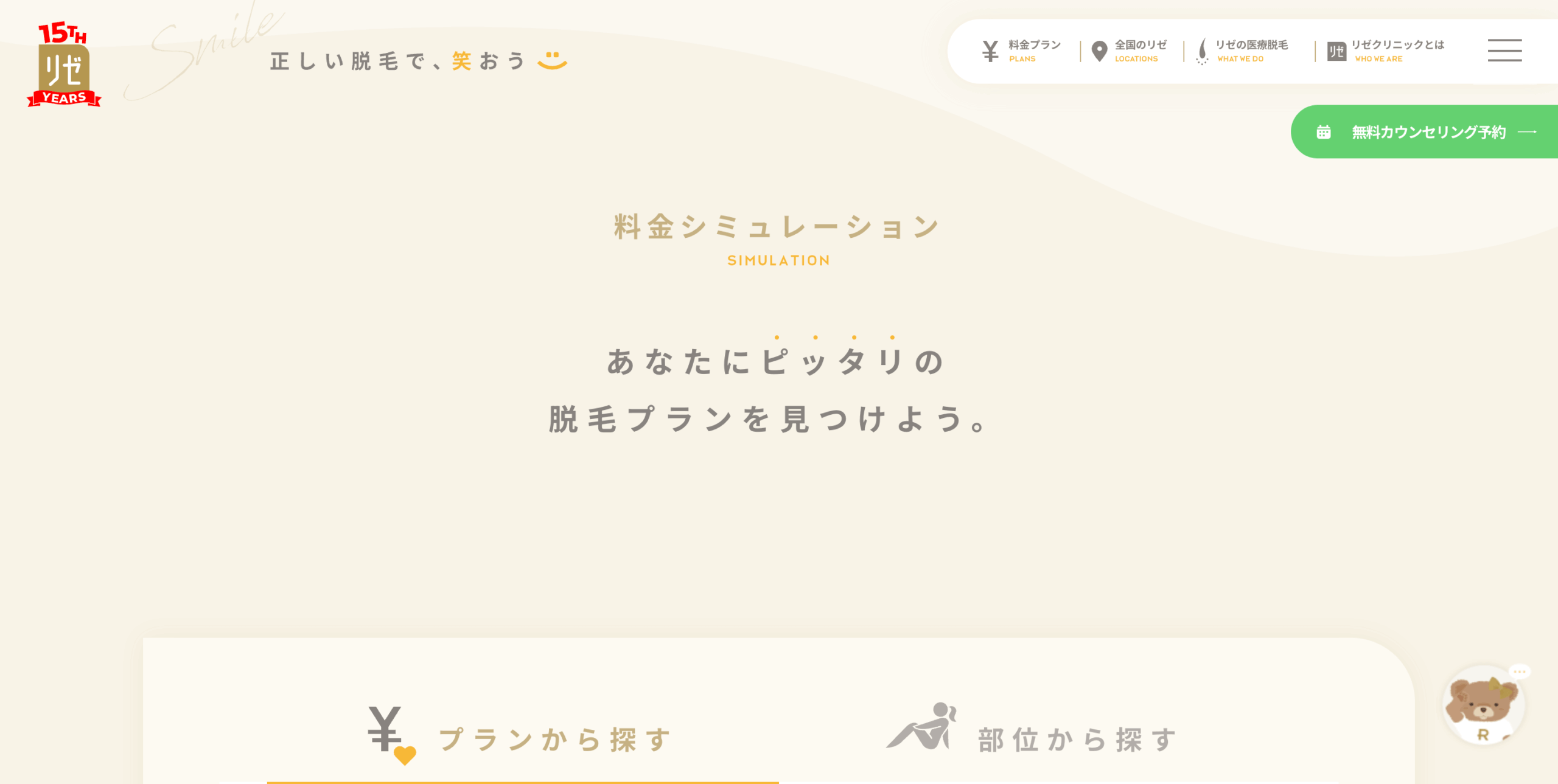 リゼクリニックの「脱毛サロンシミュレーター」は、利用者の要望に合わせた最適なプランを事前に確認できるオンラインツールです。