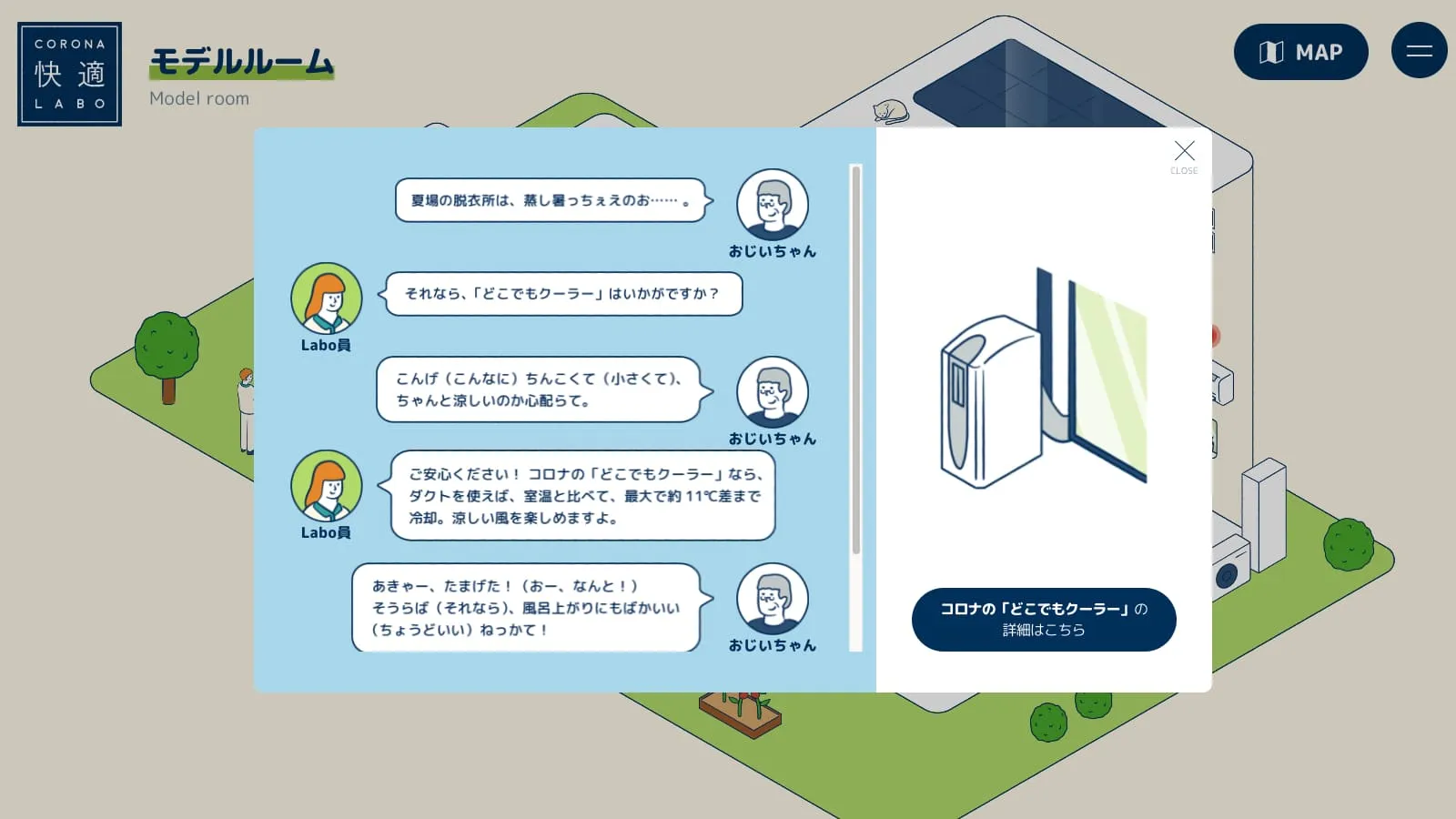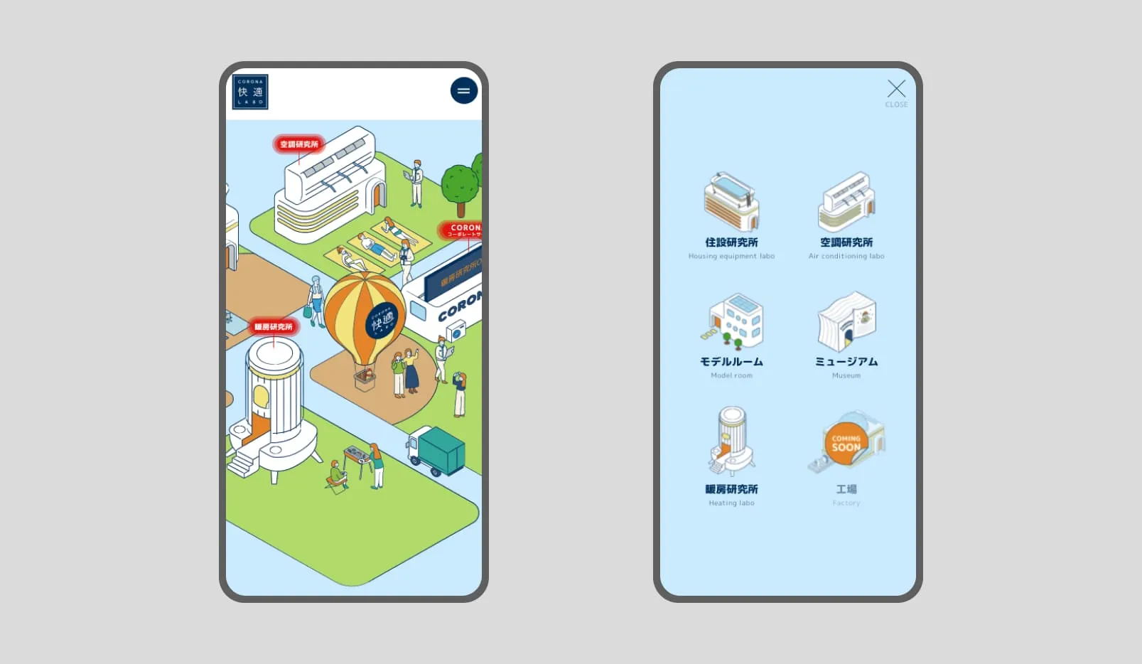 『CORONA快適LABO(ラボ)』を制作いたしました🛁 https://www.corona.co.jp/kaitekilabo/ 🔖ジャンル:企業広報・ブランディング 暖房機器などの製造販売を行う総合住宅設備メーカー 「株式会社コロナ」による『快適をテーマにした仮想の研究所』がテーマのブランドサイトです。 創業当初からの歴代商品が見れる「ミュージアム」や、 商品開発の裏側や開発者のこだわったポイントなどを紹介している 「空調研究所」「住設研究所」があります。