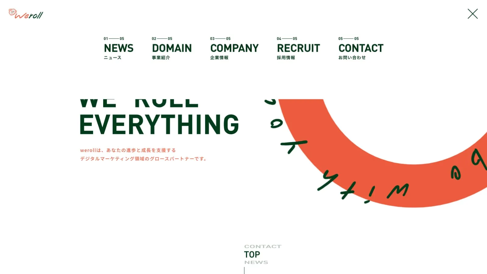 ・ロゴをはじめとして、サイト内の色々な箇所がくるくると有機的に回転する動きを効果的に使用。企業名に含まれる「roll」を印象付ける演出となってます。 ・CMSとしてWordpressを使用し、公開後の更新のしやすさを両立させました。