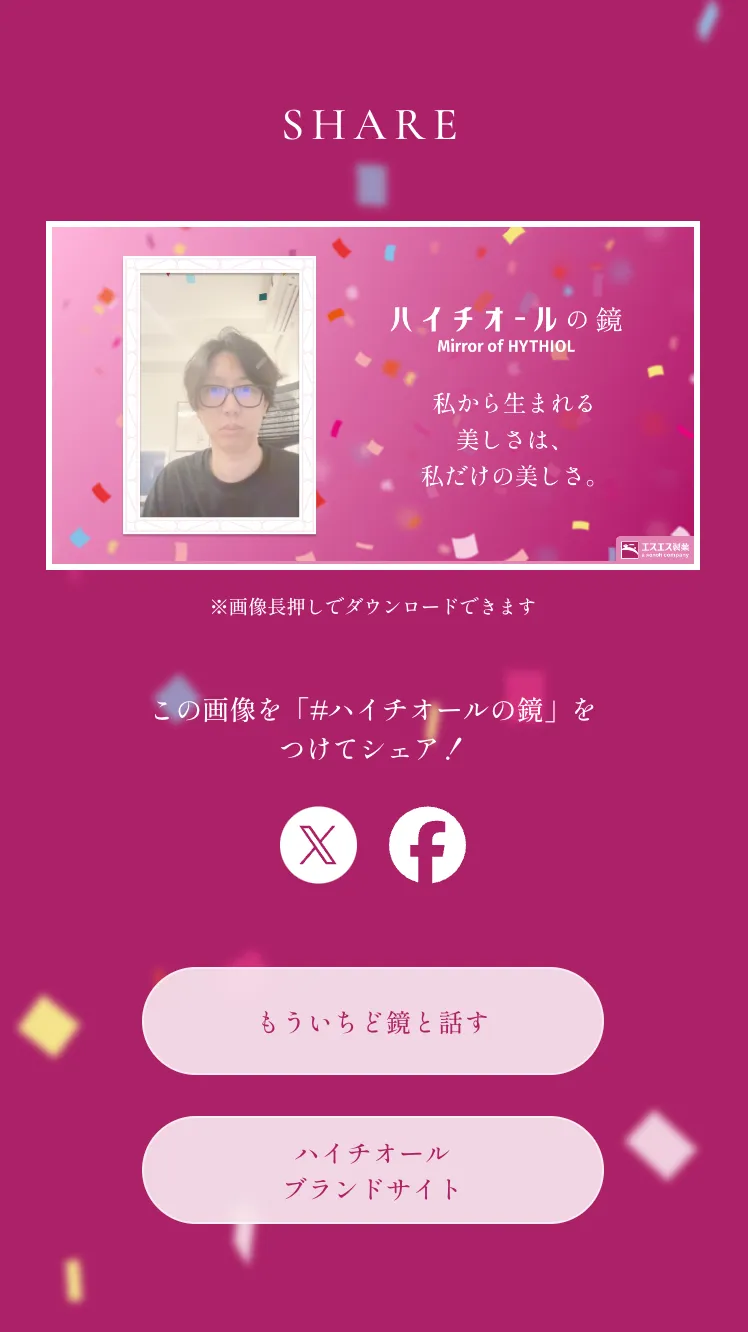Webサイトにたくさんの方が訪れ、鏡と対話する体験を楽しみました。 また、このコンテンツは商業施設で開催されたPRイベントでも活用されました。イベントでコンテンツを体験した後には、診断されたメッセージが添えられた記念写真をダウンロードできるようになっており、多くの画像がSNSでシェアされています。 BALANCeでは、商品を体験とともにユーザーに届けるようなPRコンテンツの制作を得意としています。ただのPRコンテンツではない、ユーザーの記憶に残りやすいコンテンツの企画設計から制作まで対応しています。PRイベントの開催を検討している方や、ユニークなコンテンツを制作したい方はぜひお気軽にお問い合わせください。