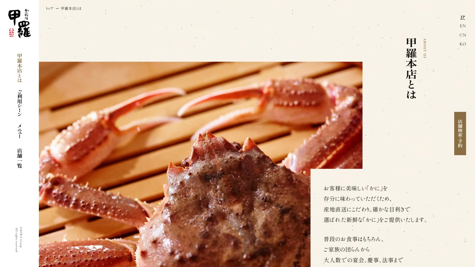 日本全国に多数の飲食店舗を展開する株式会社甲羅のサービスサイトをリニューアルし、情報発信の最適化とブランド価値の向上を図りました。