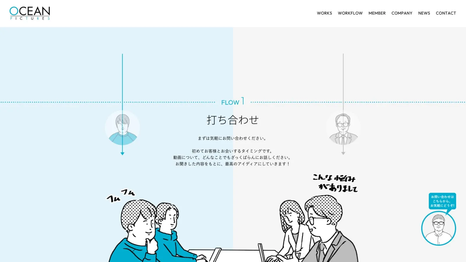 デザイン面では、かわいくポップな印象のイラストを使用し、各ページで同じトーンのイラスト・配色で統一させました。 オープニングには遊び心のあるアニメーションを設定し、戦隊モノの集合写真のようなチーム感を演出しています。 ワークフローの紹介ページでは、打ち合わせから制作・納品までの流れをわかりやすく説明し、クライアントにとっての顧客・見込み客が利用しやすい導線や構成を意識し制作しました。 また、CMSで更新・運用しやすいよう、管理画面のカスタマイズも行いました。