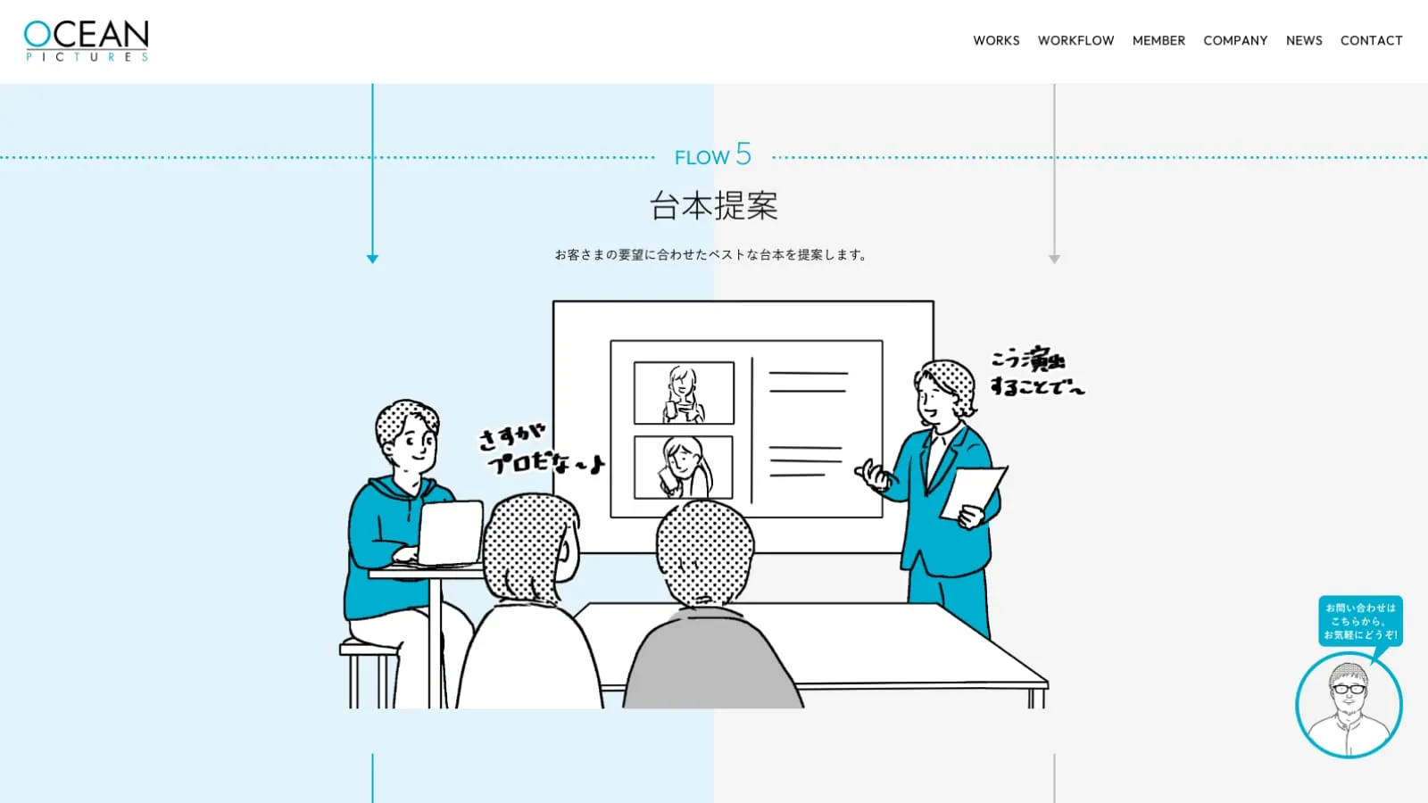 映像制作を行う有限会社 OCEAN PICTURESのコーポレートサイト制作にて、デザイン・開発・CMS構築を担当しました。 7年ぶりのリニューアルということもあり、目を引く新たなデザインと管理画面の更新しやすさにこだわって制作させていただきました。