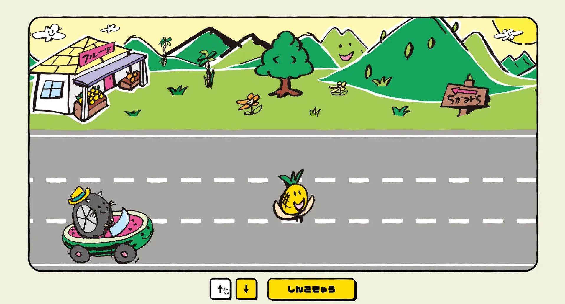 「かもしれない運転」の大切さを伝える交通安全キャンペーンを実施するにあたり、ゲームコンテンツの制作を行いました。このゲームでは、ユーザーが車を操作し、障害物に当たらないような運転を行います。 ゲームには公式キャラクターのイラストを活用し、キャラクターデザインに合わせたグラフィックでゲームを制作しました。 また、ゲーム画面をプリントしたTシャツを制作し、X上でプレゼントキャンペーンを行いました。Xでのプレゼントキャンペーンは、キャンペーンが拡散されやすいようにフォローとリポストを条件としています。